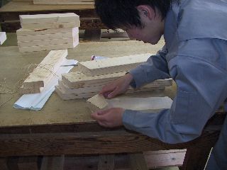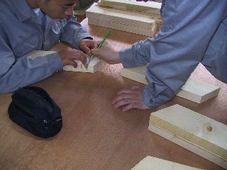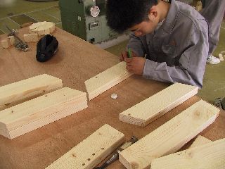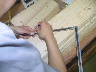 釘を打ち込む場所を罫書いています。