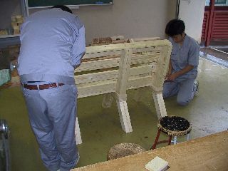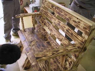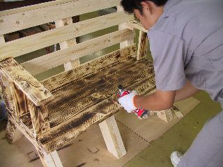 ニス・塗料などがありましたが、3班はバーナーで焼いていきます