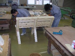 こちらの班も肘置きの接合に悩んでいます。