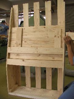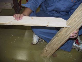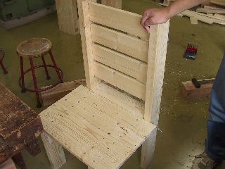 ほぞ穴に背もたれ部分をはめ込みます。 あとは難関の肘掛を作成するだけです。