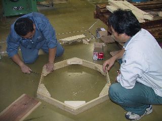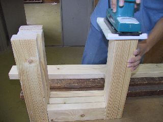 脚を水平にするため調整中!! どんな形の肘置きになるのでしょう。
