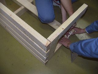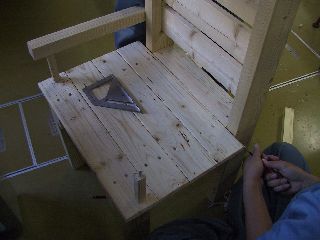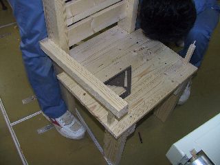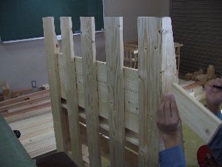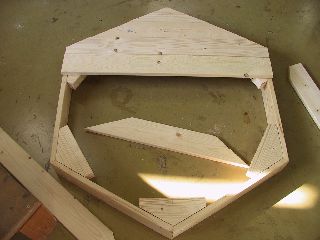 マガジンラックも3段目に取り掛かっています。 六角形テーブルはうまく板が載るのでしょうか。